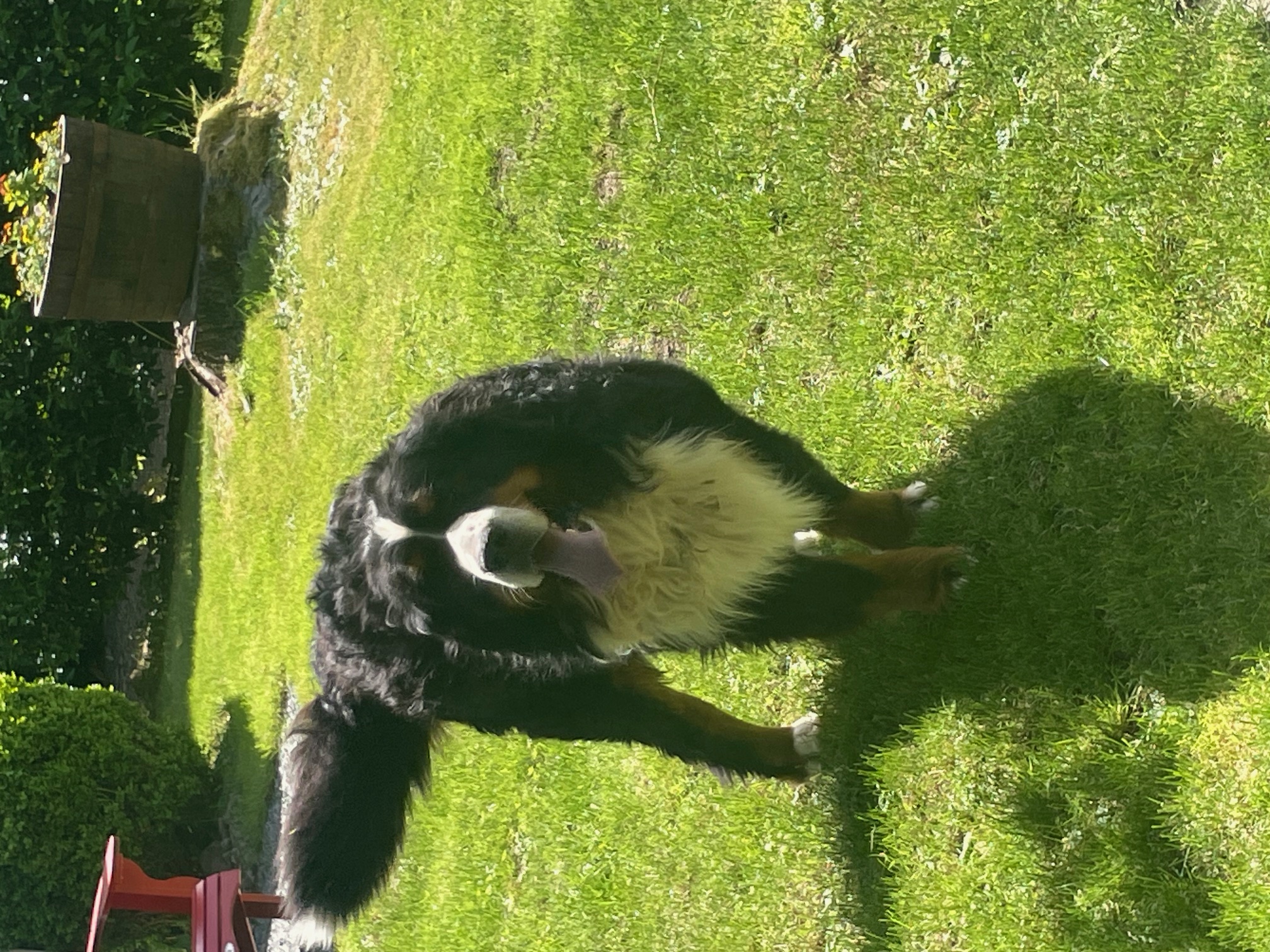 Lilly is a girl that we held back for ourselves. She is a full sister to Marly. She comes from European bloodlines. She is the daughter of Ella and Champion Quito (who is a gorgeous Berner). Her personality is very affectionate and outgoing. She loves spending time with us either in play or just sitting on our feet. She is one of our bigger girls. Her markings are perfect and she has a medium, shiny, silky coat. She is an awesome dog!