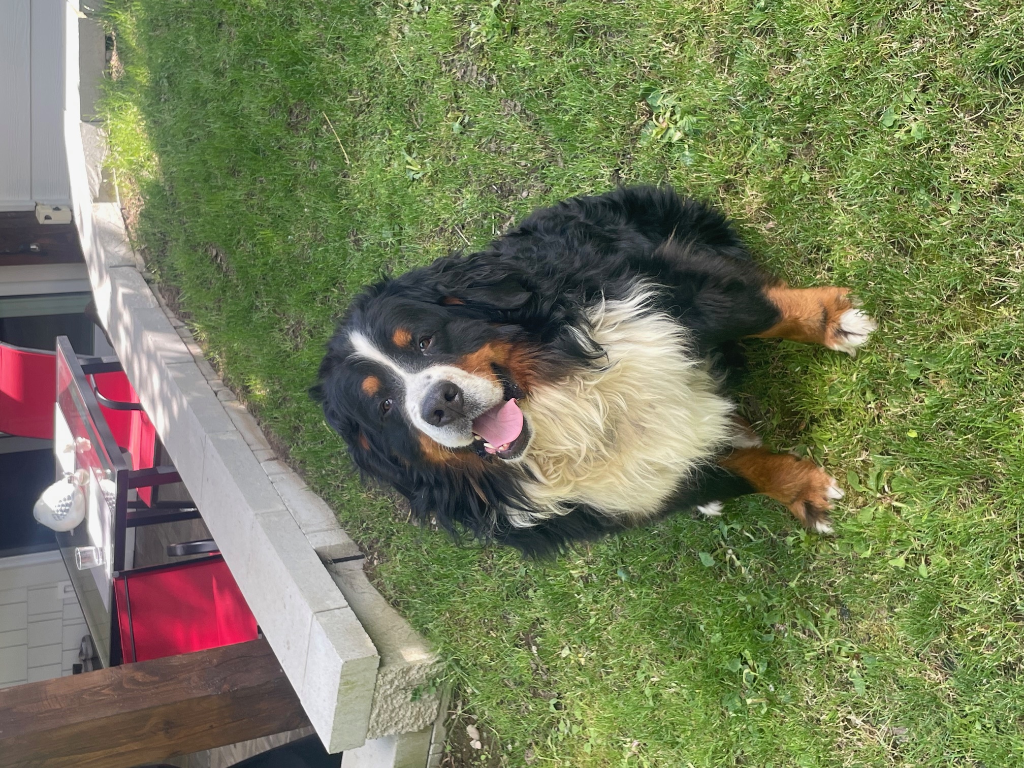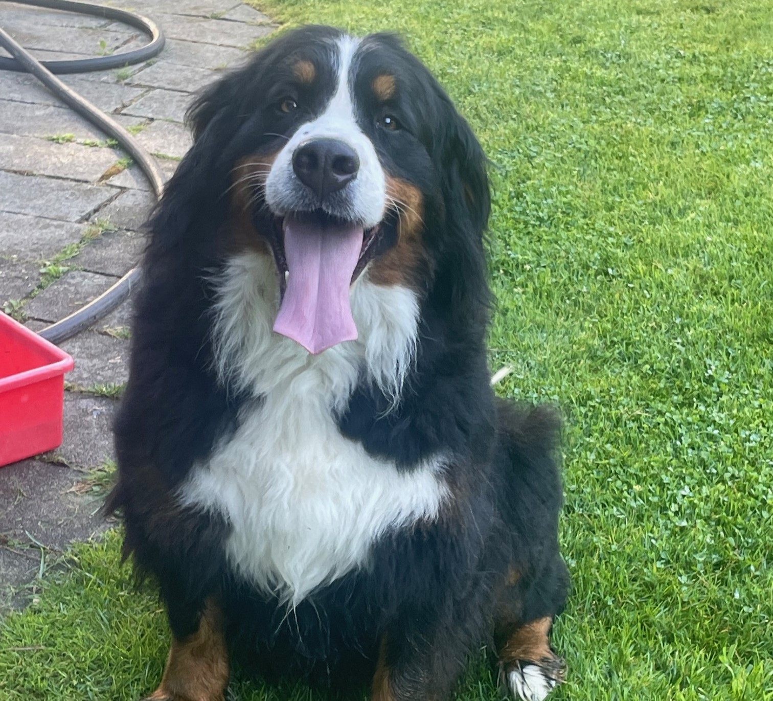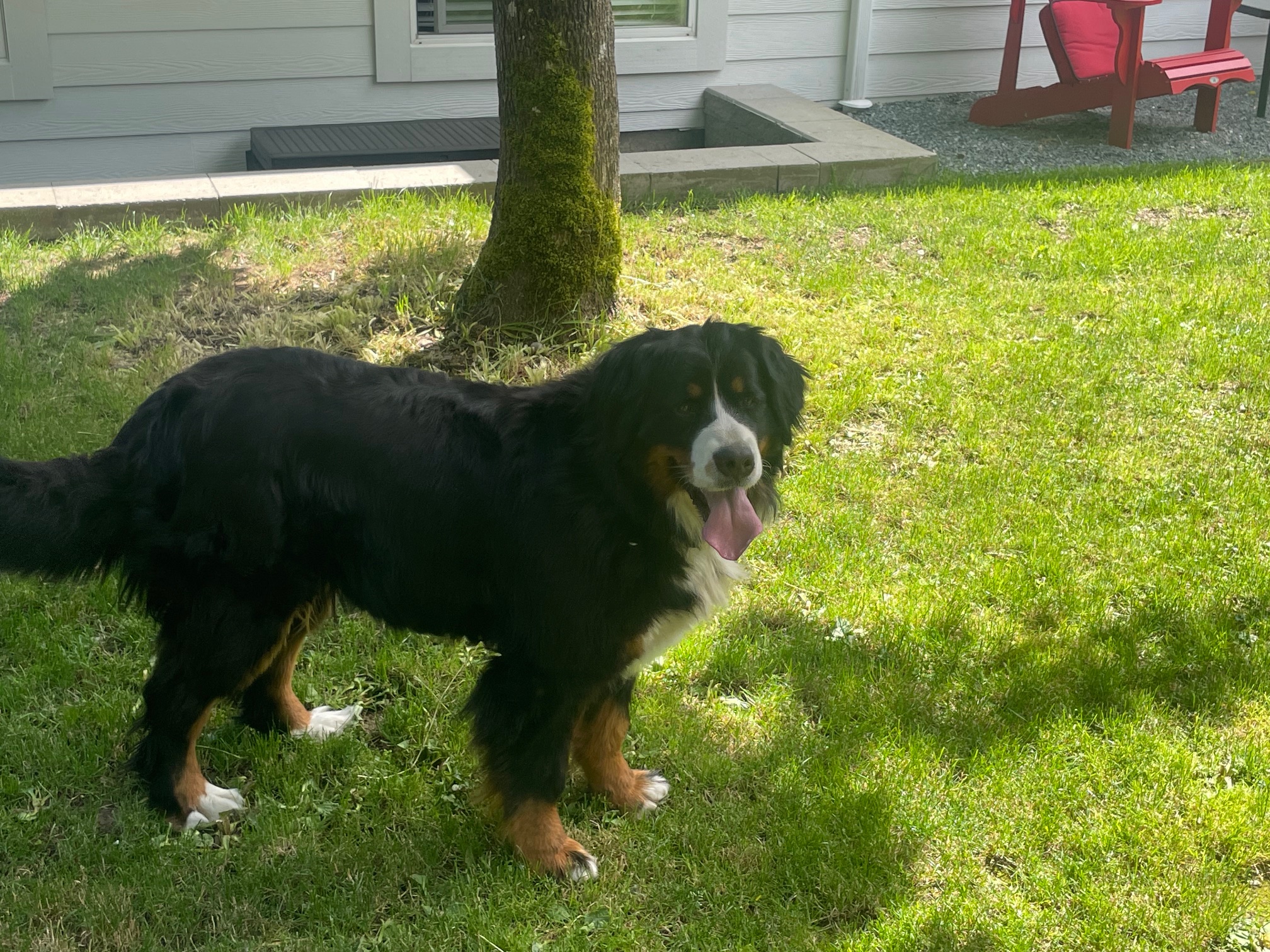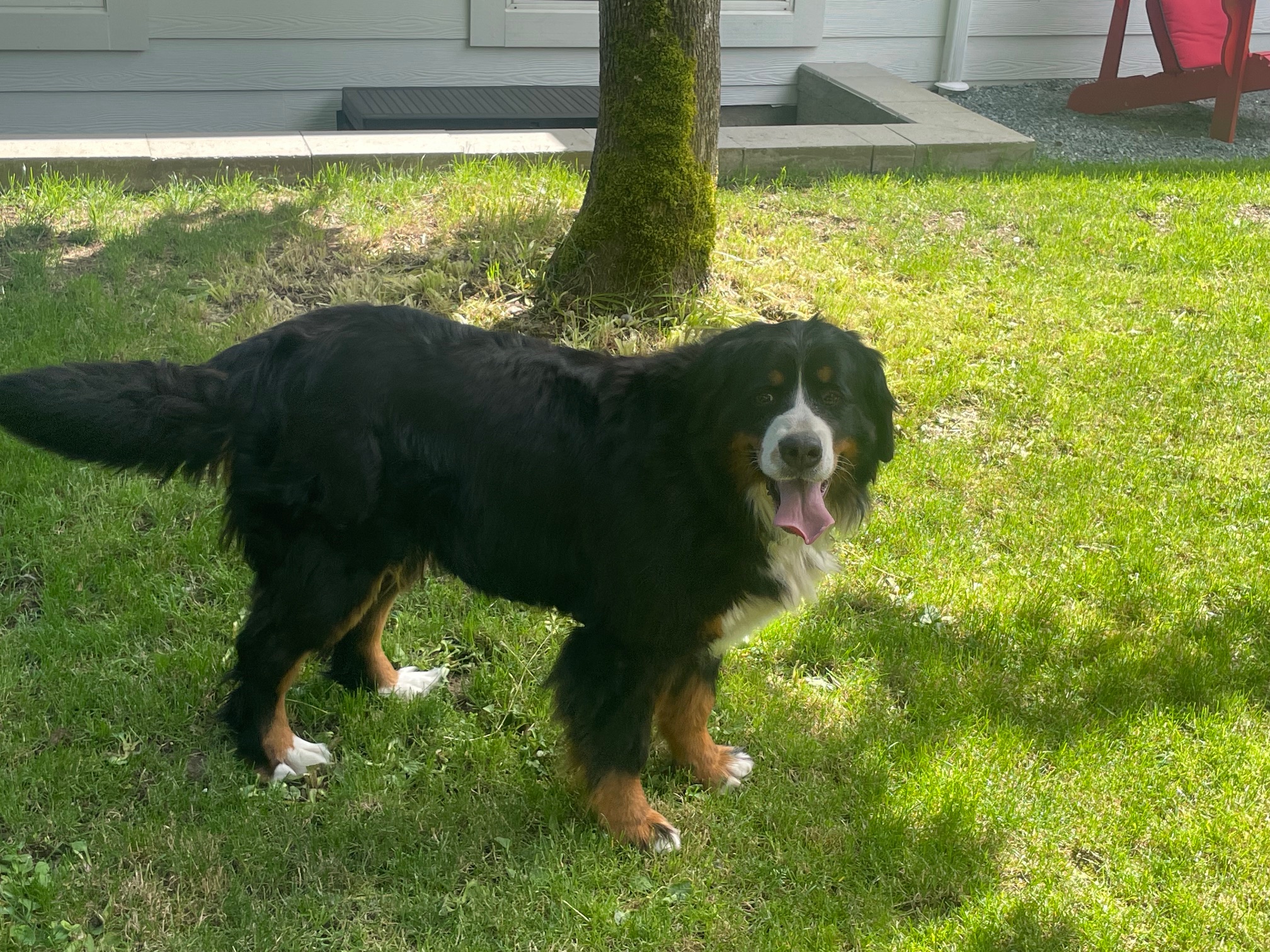 Quito is an amazing Berner! We imported him as a pup from Europe. He has numerous championship titles in his lineage including international Championships. His 4 generation pedigree averages 9 years of age. He has many relatives that have lived for over 10 years. He is the perfect male Bernese Mountain dog. He has a large frame, weighing in at 125 lbs and strong bones. He has perfect markings and a great temperament - friendly, great with people, loyal, affectionate and outgoing. He has been shown and is a Canadian Champion. We are so proud!