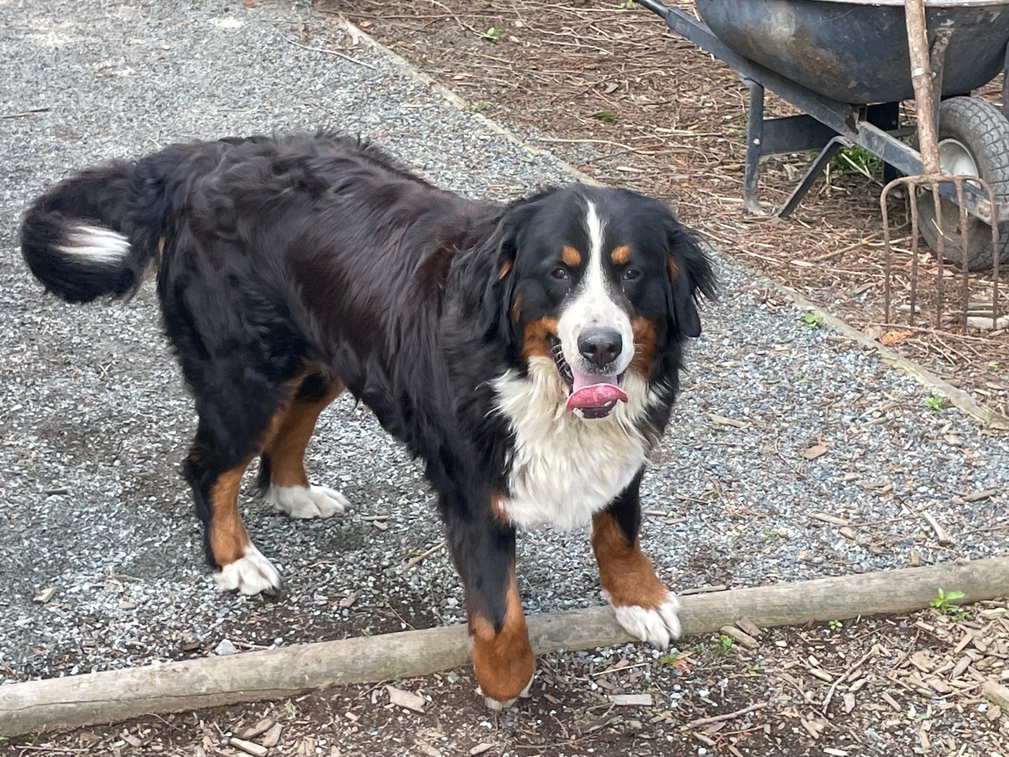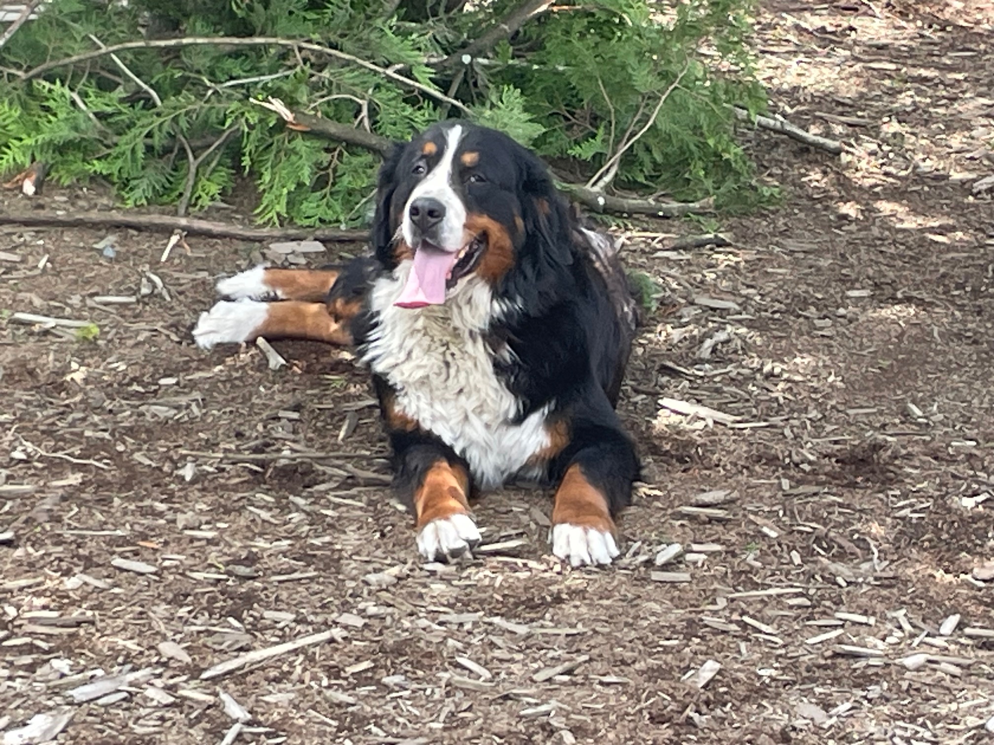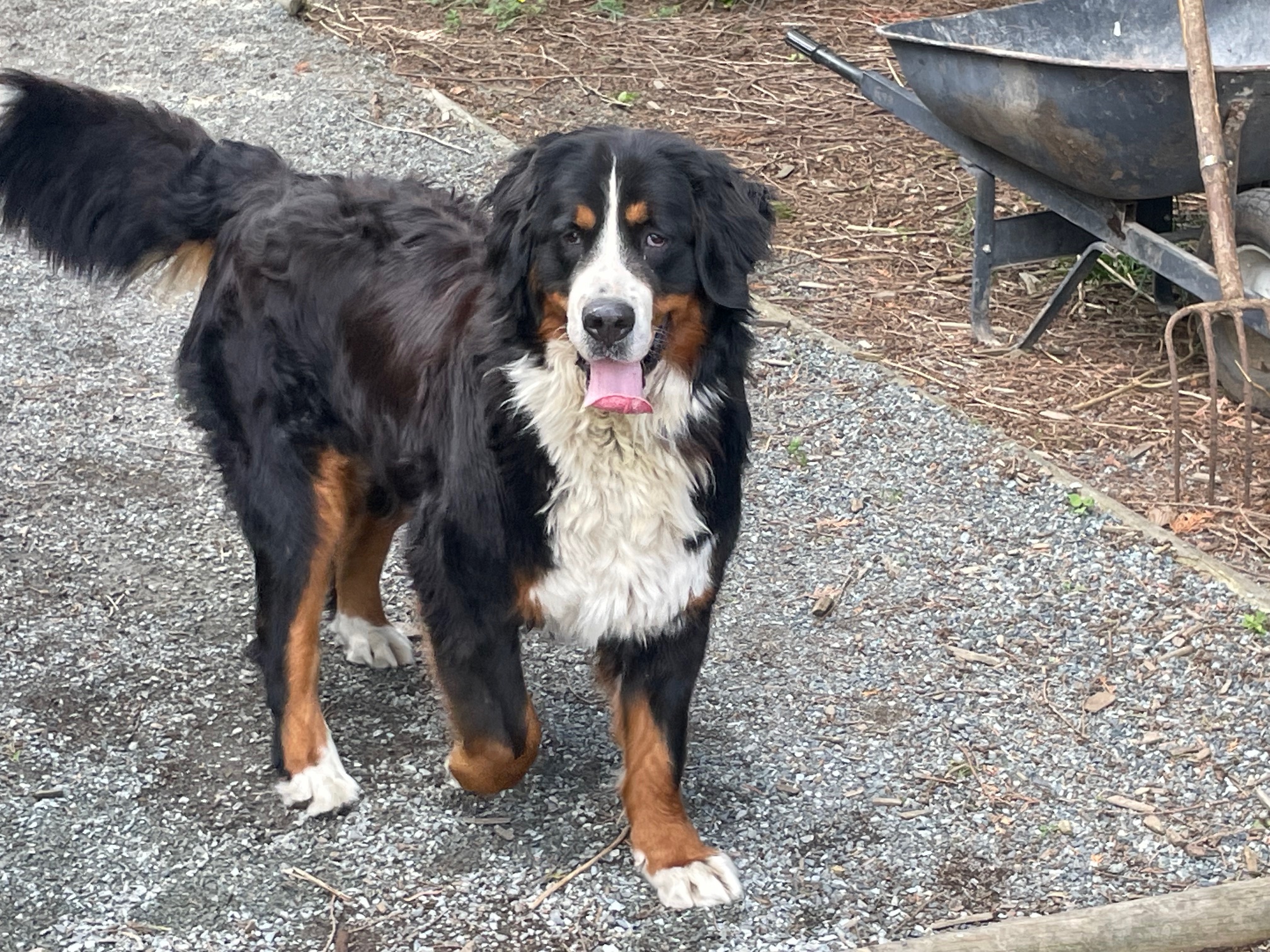 Quito is an amazing Berner! We imported him as a pup from Europe. He has numerous championship titles in his lineage including international Championships. His 4 generation pedigree averages 9 years of age. He has many relatives that have lived for over 10 years. He is the perfect male Bernese Mountain dog. He has a large frame, weighing in at 125 lbs and strong bones. He has perfect markings and a great temperament - friendly, great with people, loyal, affectionate and outgoing. He has been shown and is a Canadian Champion. We are so proud!