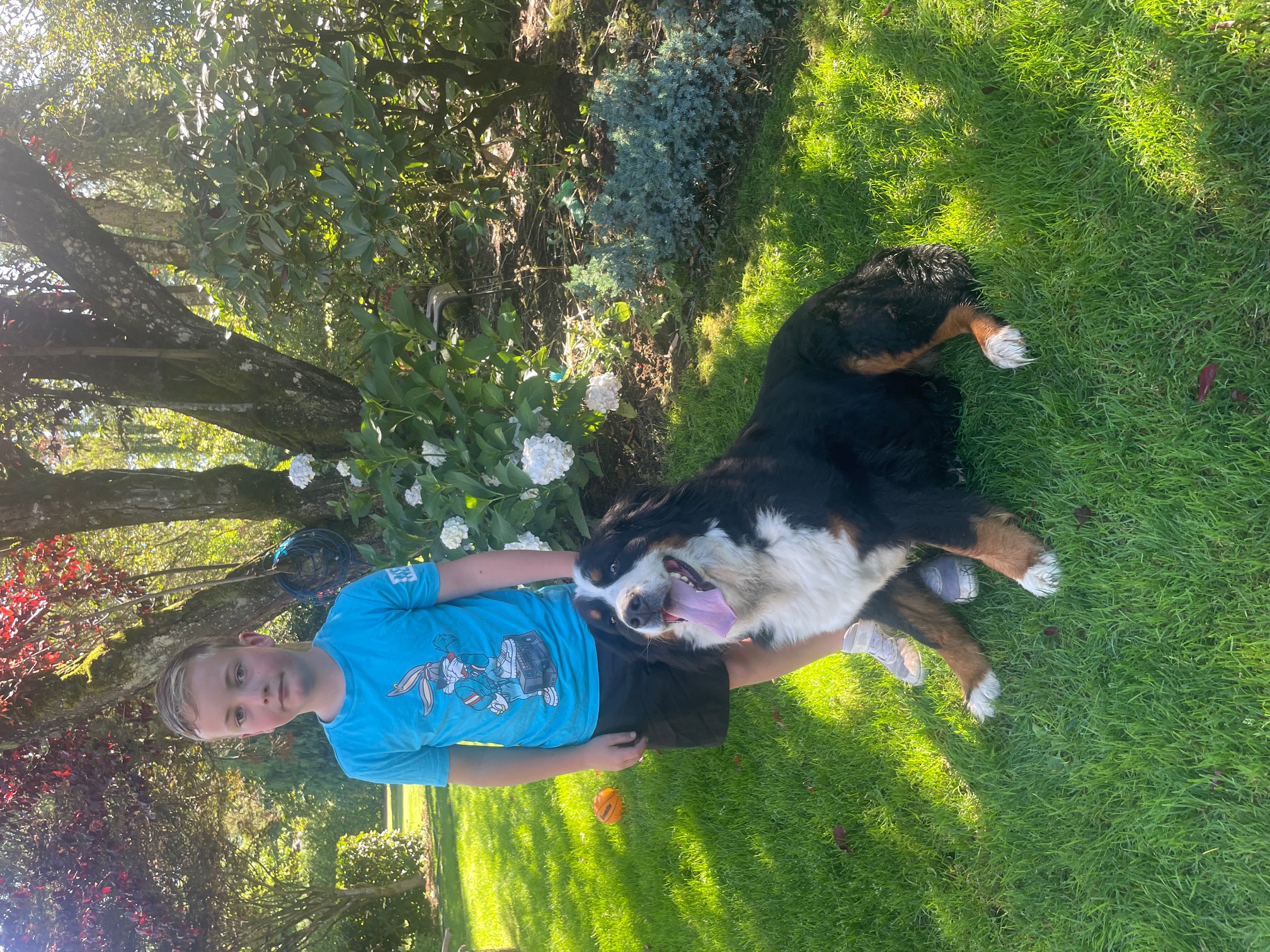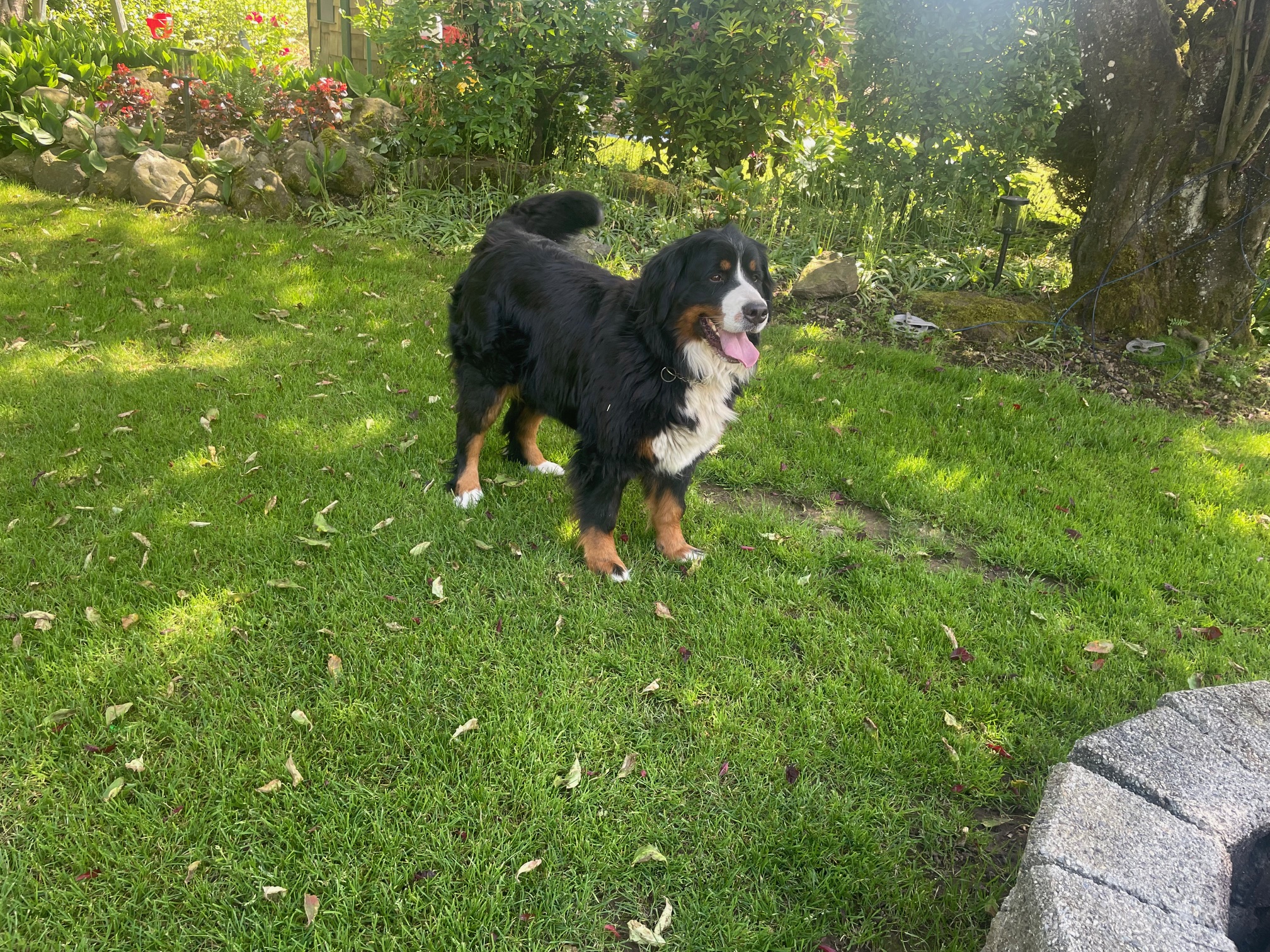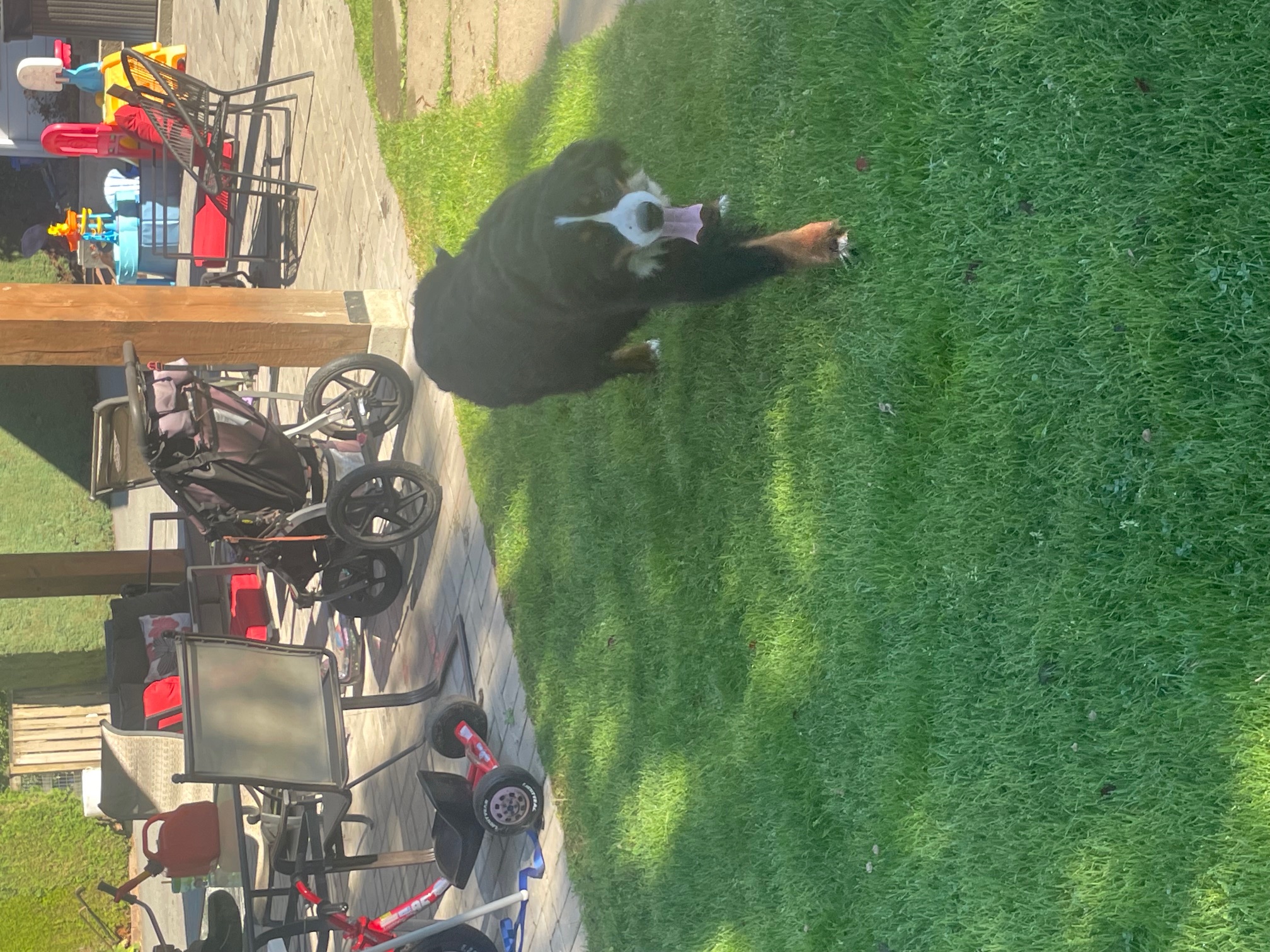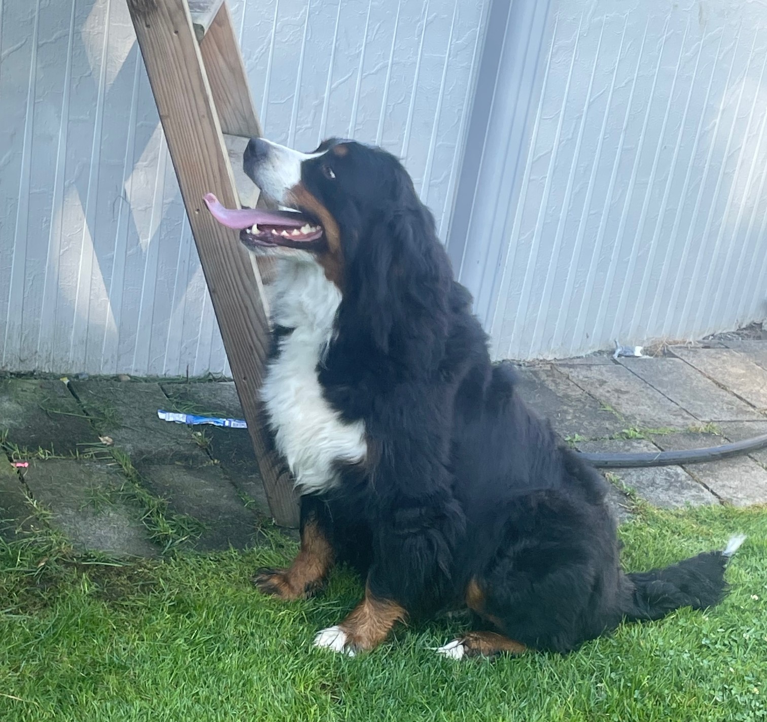 Quito is an amazing Berner! We imported him as a pup from Europe. He has numerous championship titles in his lineage including international Championships. His 4 generation pedigree averages 9 years of age. He has many relatives that have lived for over 10 years. He is the perfect male Bernese Mountain dog. He has a large frame, weighing in at 125 lbs and strong bones. He has perfect markings and a great temperament - friendly, great with people, loyal, affectionate and outgoing. He has been shown and is a Canadian Champion. We are so proud!